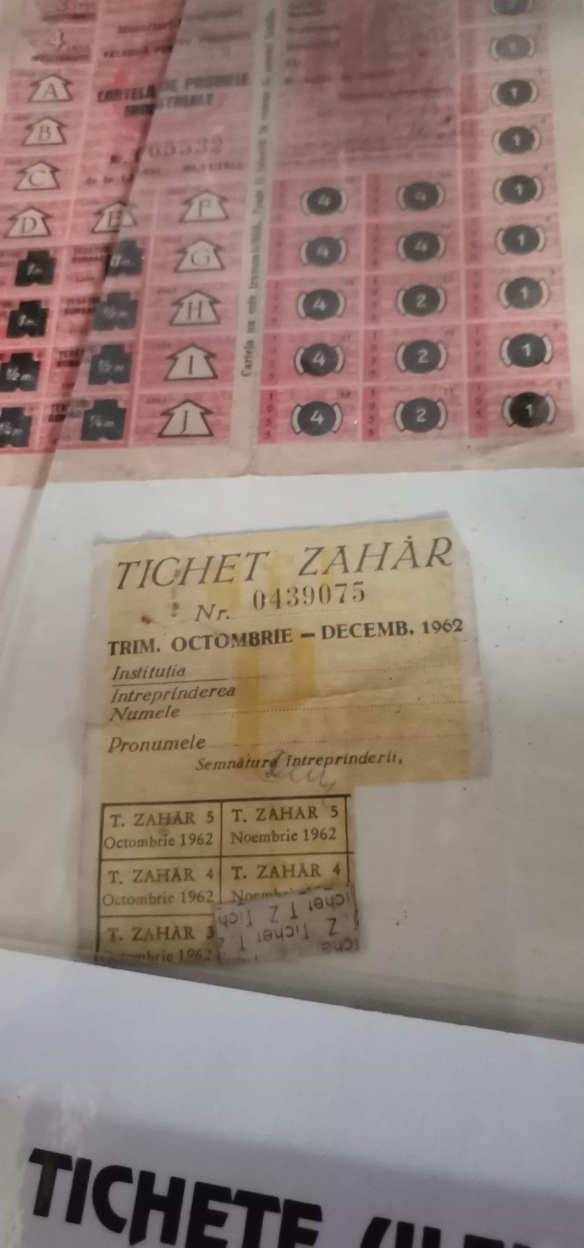 Alimentele de bază se puteau cumpăra doar pe baza unor tichete. In plus, pe lângă faptul că iți trebuia cartelă sau tichet, se mai stătea și la cozi infernale, cozi la care de cele mai multe ori se terminau produsele chiar când ajungeai la rând. Dacă aveai noroc, poate venea încă un transport în ziua respectivă.