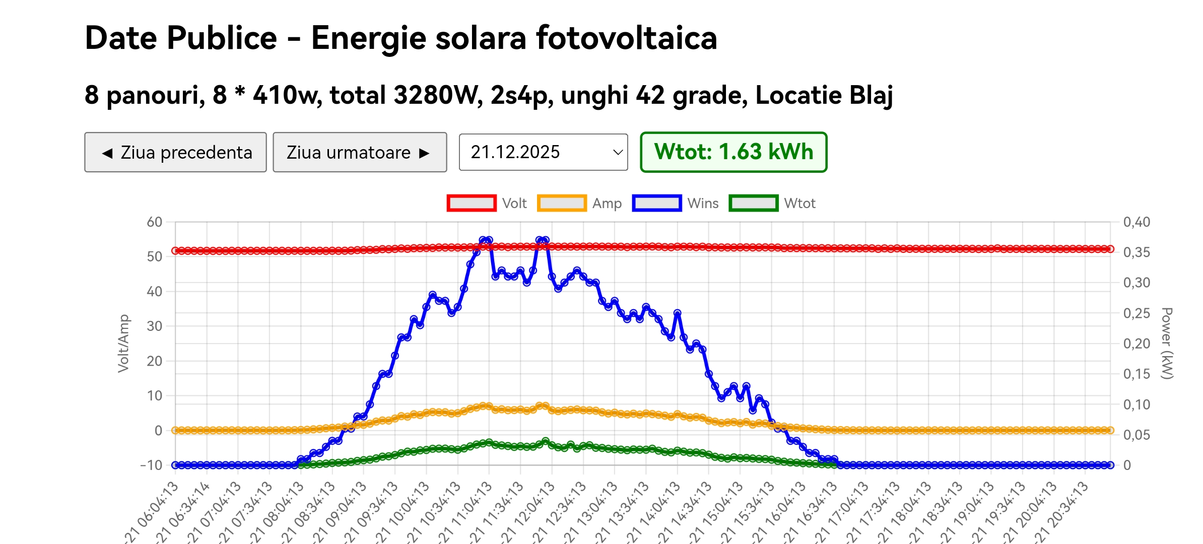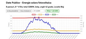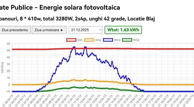 Cerul acoperit cu nori, a redus producția de energie electrică din panourile fotovoltaice.