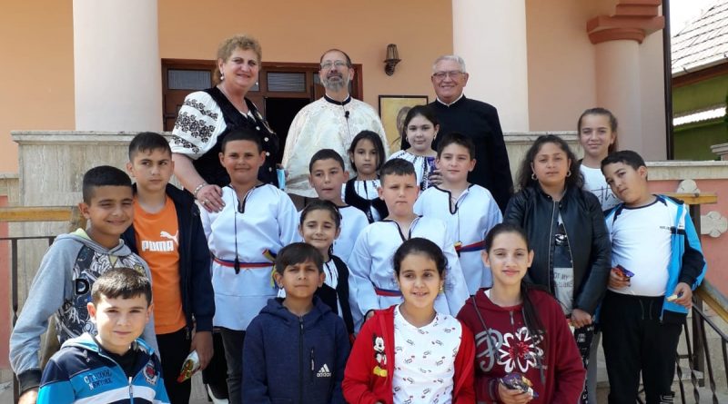 ,,Azi e mare sărbătoare/Clopotele frumos bat/Oamenii își dau binețe, cu/-HRISTOS S-A ÎNĂLȚAT!