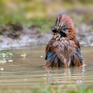 FotoWildlife Gaiță ( Garrulus glandarius ) la scăldat. 25 decembrie 2025 Marius Marcu Este o pasăre omnivoră, care se hrănește cu mici vertebrate, boabe, fructe, jir, alune, ghinda. Își ascunde provizii pentru iarnă, ascunse în scorburile copacilor. Adună kilograme de ghindă