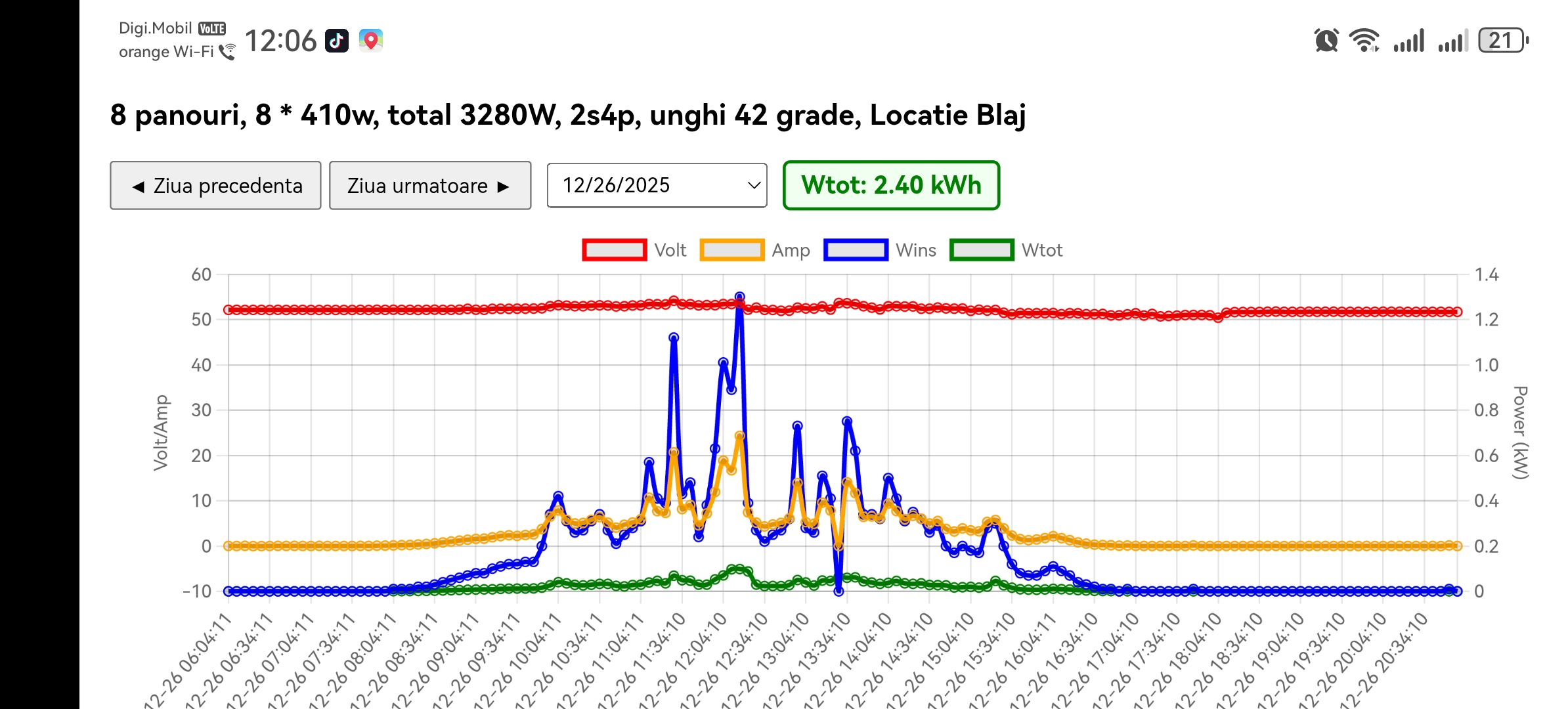 Diverse Panourile fotovoltaice au produs 2,4 kw 27 decembrie 2025 Dj Gheorghe Ieri 26 decembrie, panourile fotovoltaice au produs 2,4 kw energie electrică Productie 2,4 kw energie electrica.