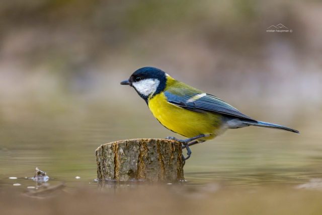 FotoWildlife Pițigoi mare ( Parus major ) 23 aprilie 2021 Marius Marcu Pițigoi mare ( Parus major ) pe o buturugă în mijlocul apei. Fotografia zilei de 23 aprilie 2021, Pițigoi deasupra apei. cheie bolta din polistiren
