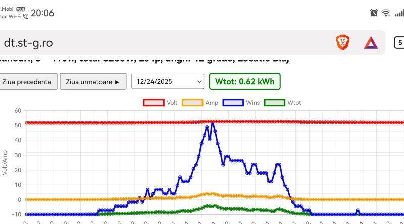 Diverse Productia din 24 decembrie 25 decembrie 2025 Dj Gheorghe Ieri 24 decembrie productia de curent electri a fost de doar 620w. Foarte putin.